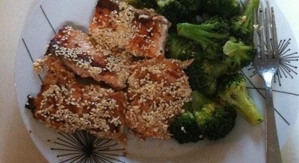 Gebratenes Lachsfilet mit Sesam und Brokkoliröschen